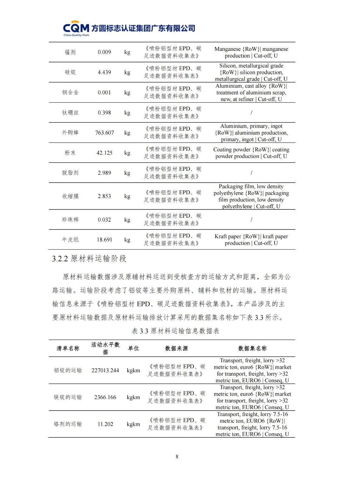 ½ËÕ°ÙÀÖ²©ÂÁ²ÄÓÐÏÞ¹«Ë¾ ÂÁºÏ½ðÐÞ½¨ÐͲģ¨Åç·ÛÐÍ£© ²úƷ̼×ã¼£ÆÀ¼Û±¨¸æ